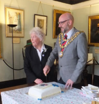Mayor Cllr. Leigh Redman and Eleanor Dixon cutting the cake