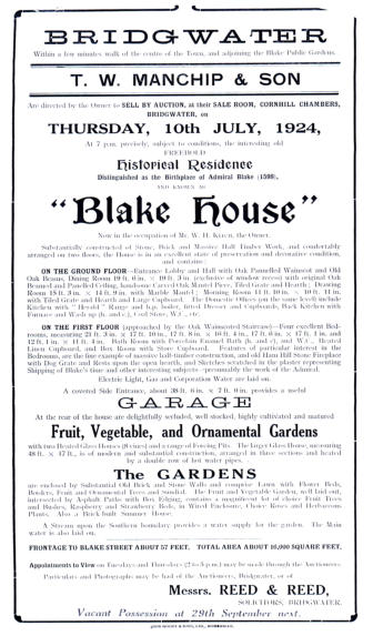 Bridgwater Town Council resolved at yesterday's meeting to acquire Blake House