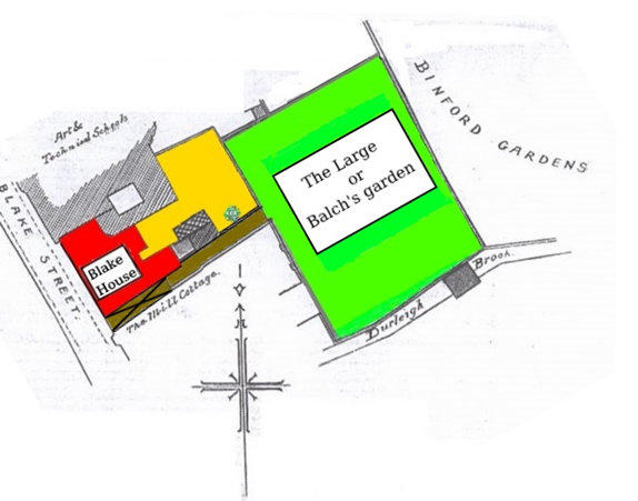To the rear of Blake House was a large walled garden, backing onto the grounds of Binford House – later Blake gardens.